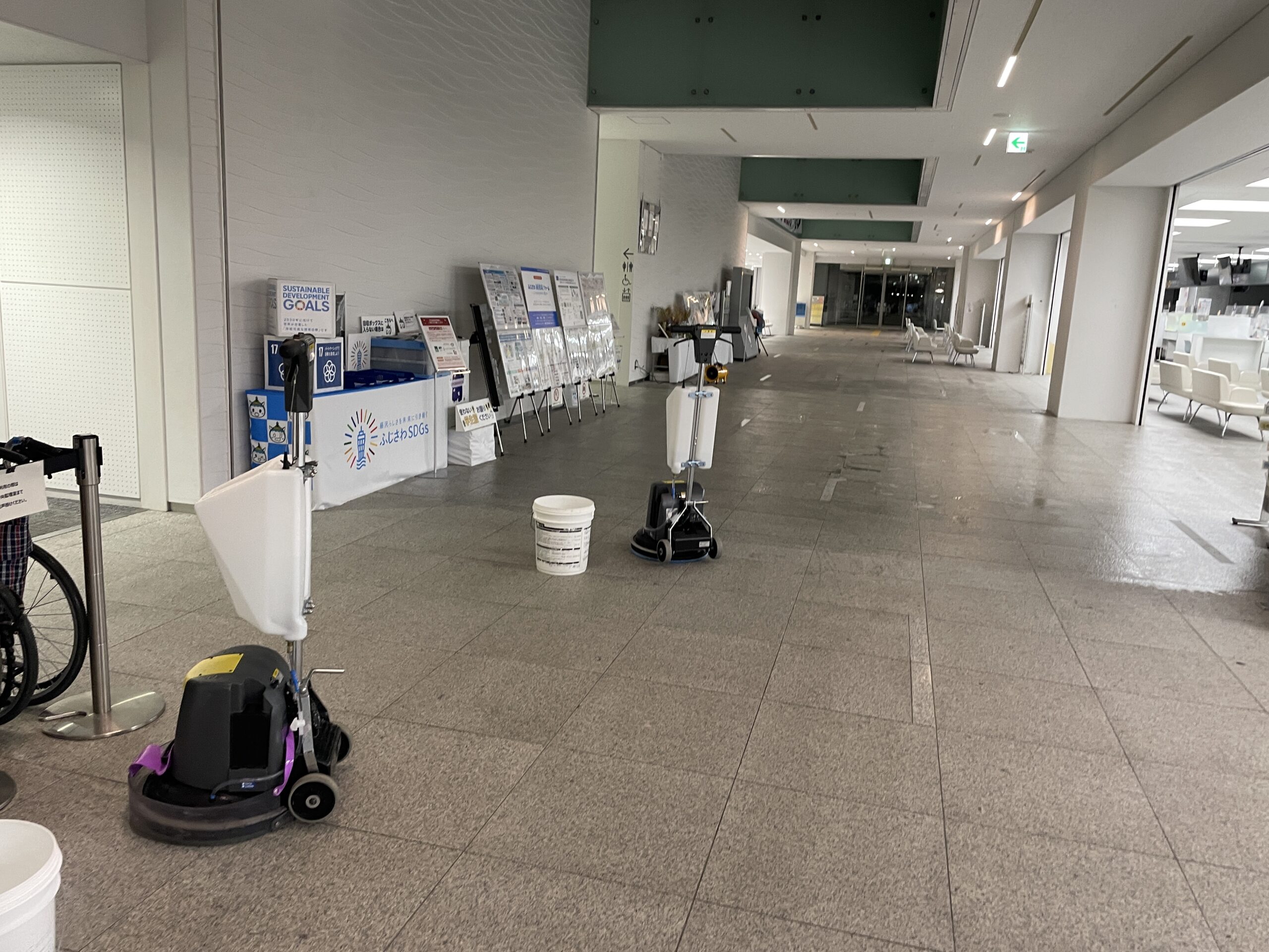 従来のポリッシャーではアクセスできなかった狭いエリアやトイレ周り、階段なども簡単に洗浄できる機材です。